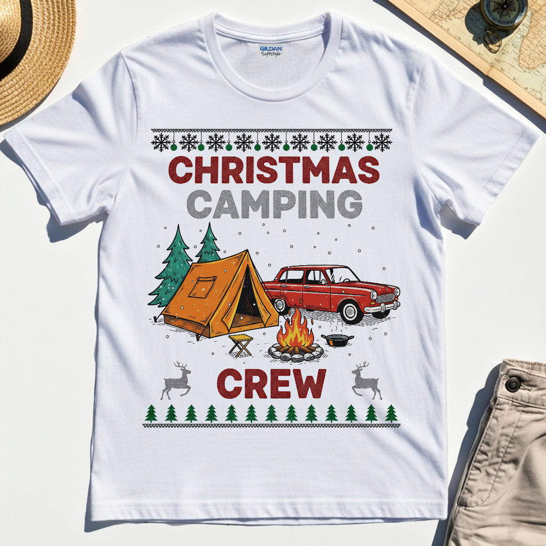 Retro Red Car Cream Christmas Camping Crew T-Shirts