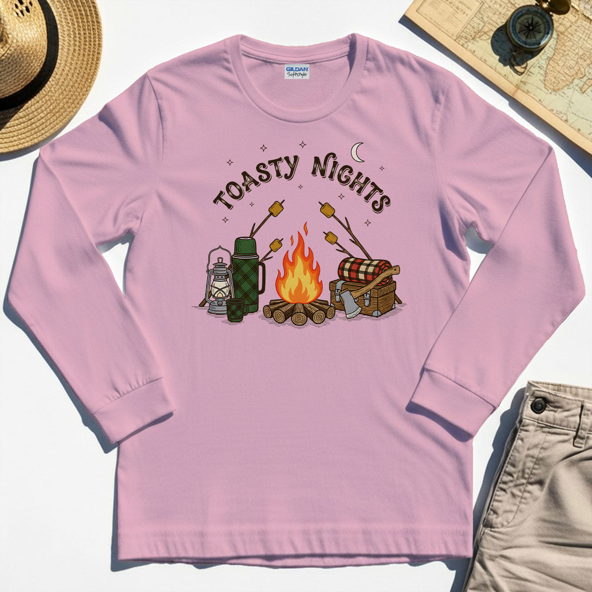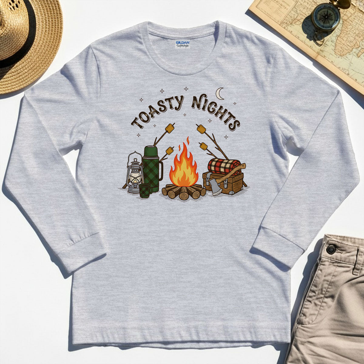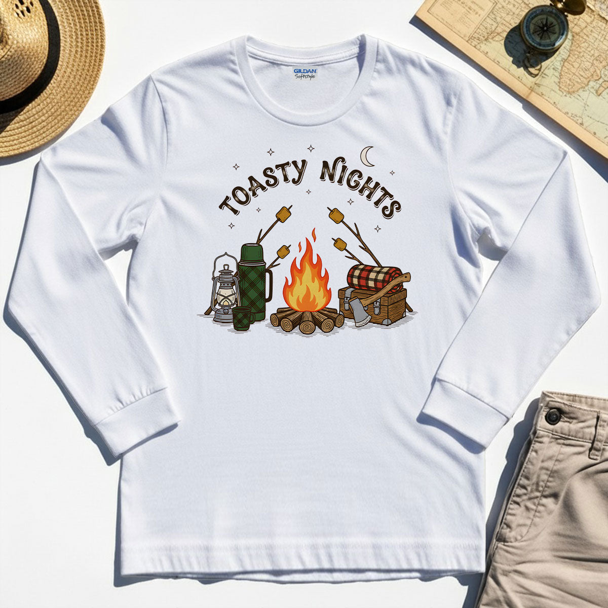 Campfire Marshmallow Roasting Graphic Long Sleeve For Campers & Outdoor Lovers