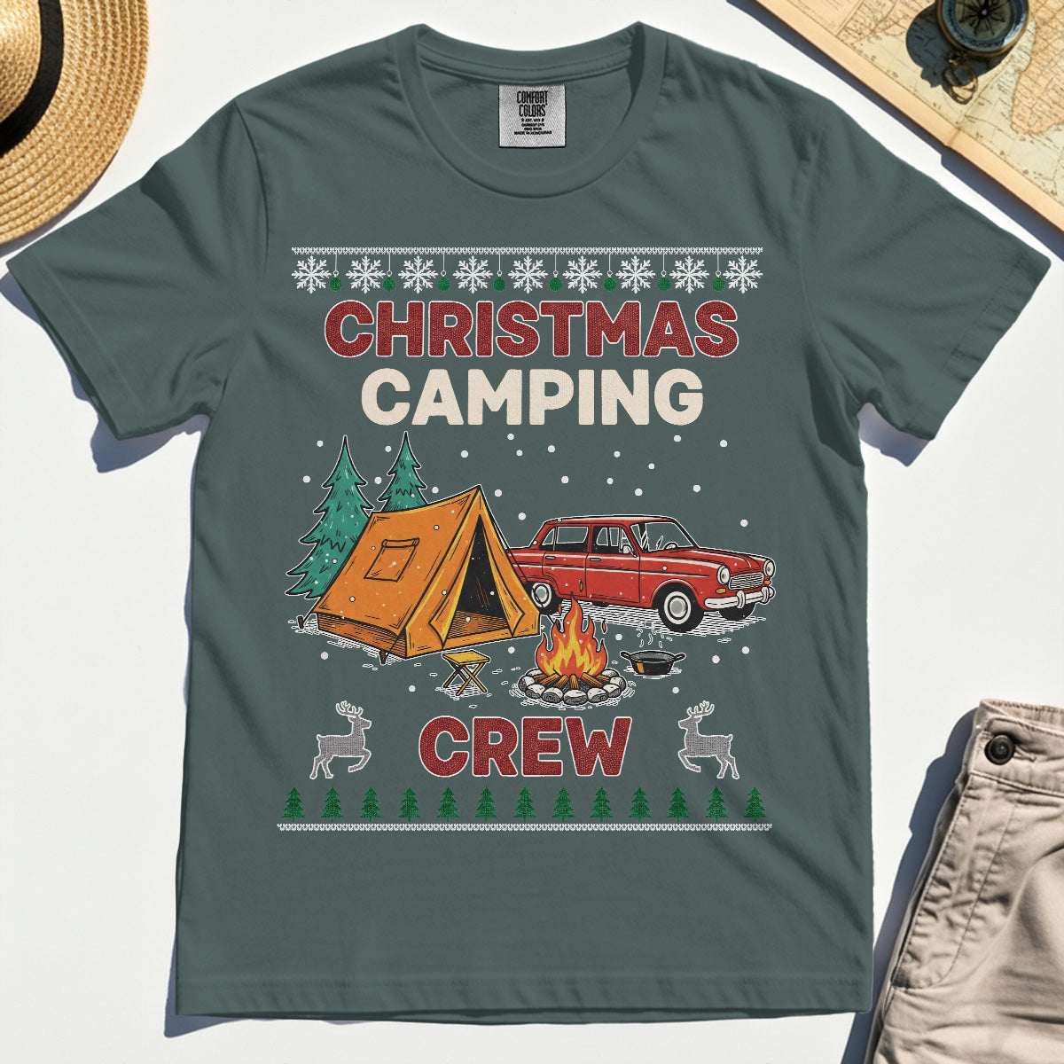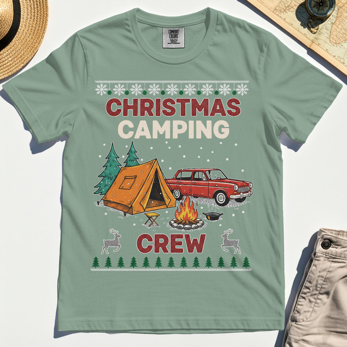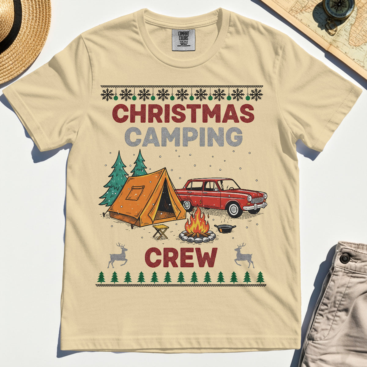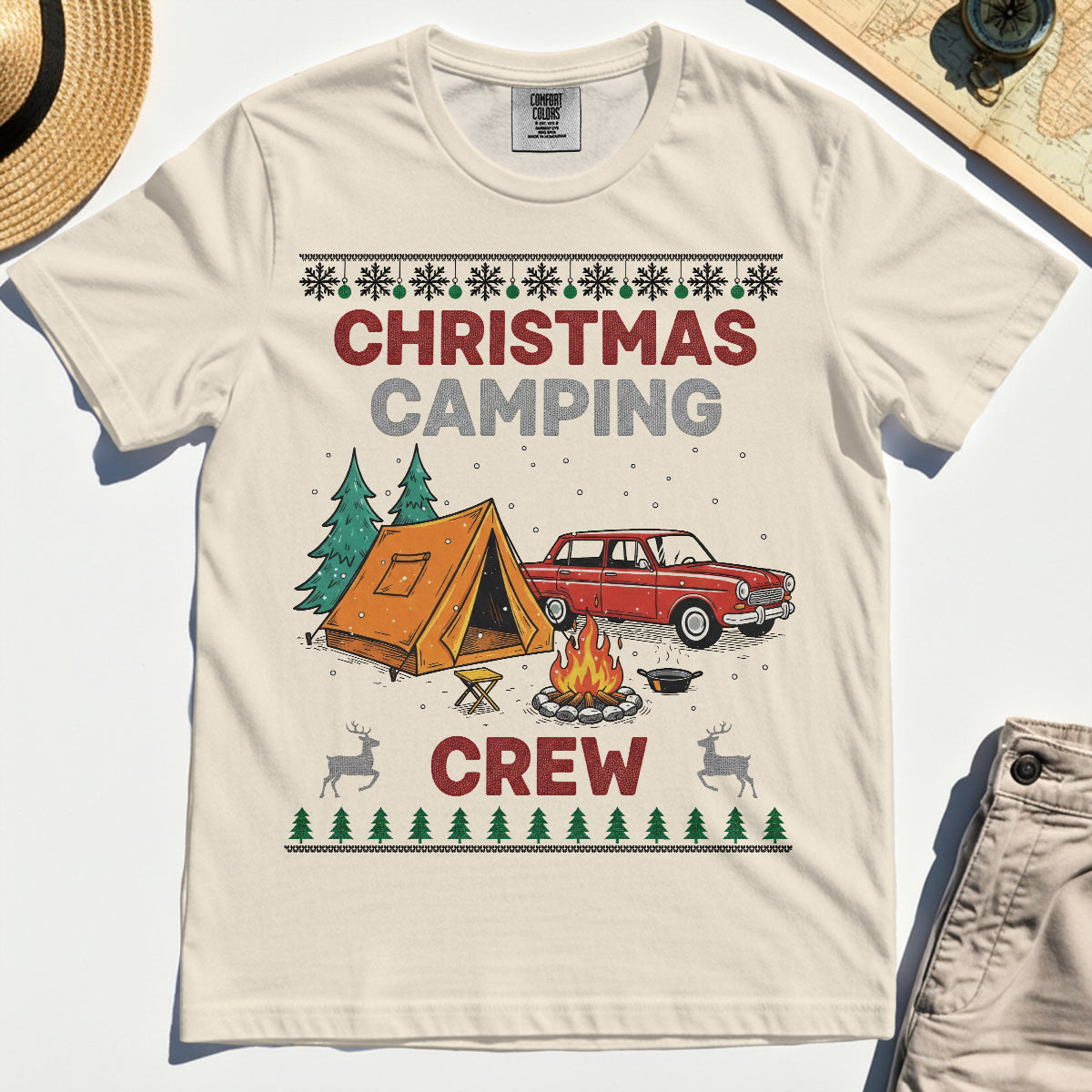 Retro Red Car Cream Christmas Camping Crew Comfort T-Shirt